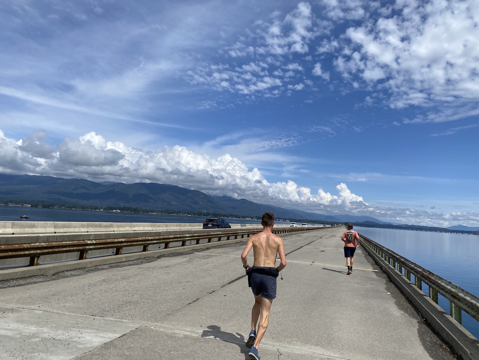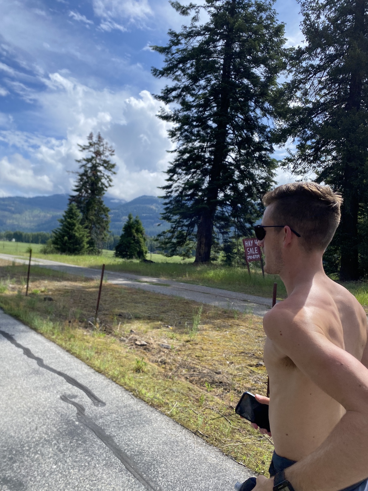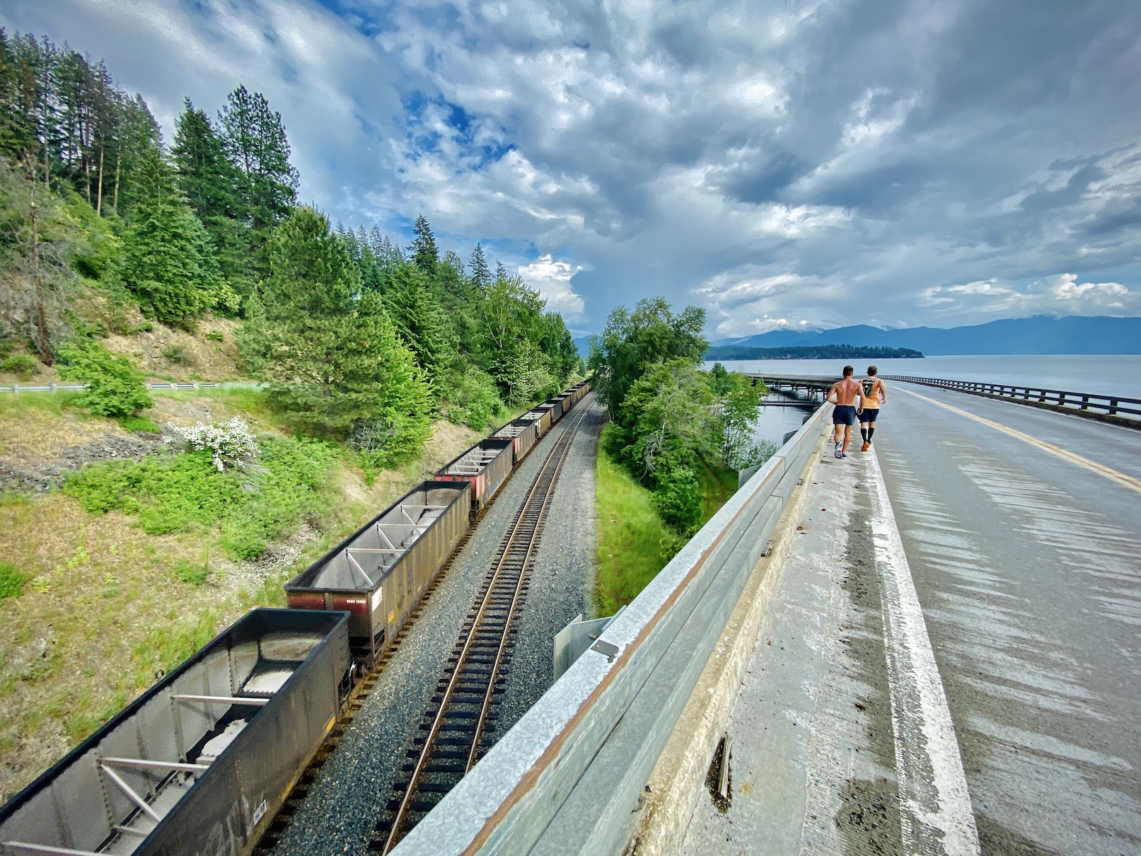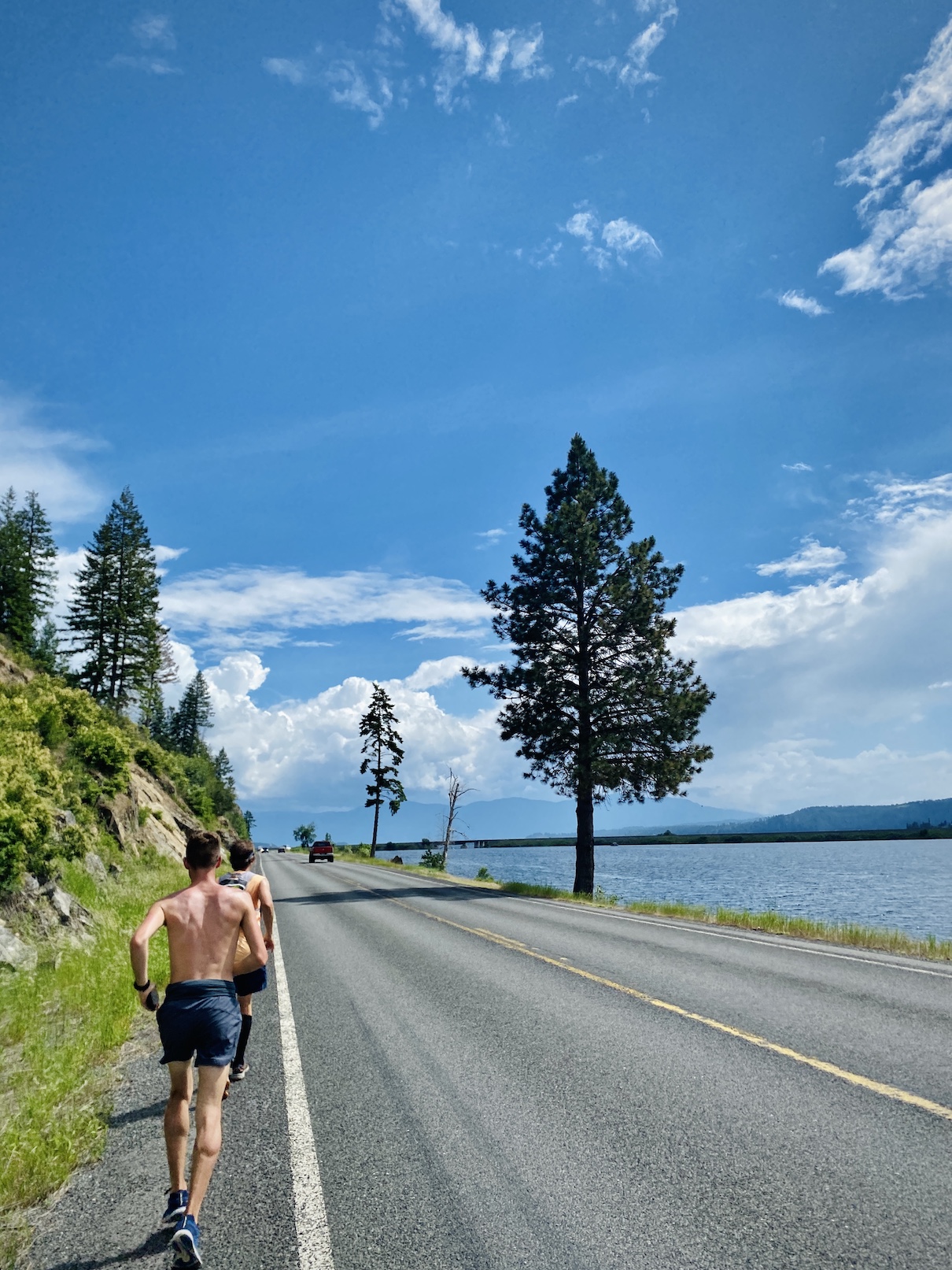 " Let's run across Idaho.That's a terrible idea. But okay.Good thing it's a narrow state.What time? "